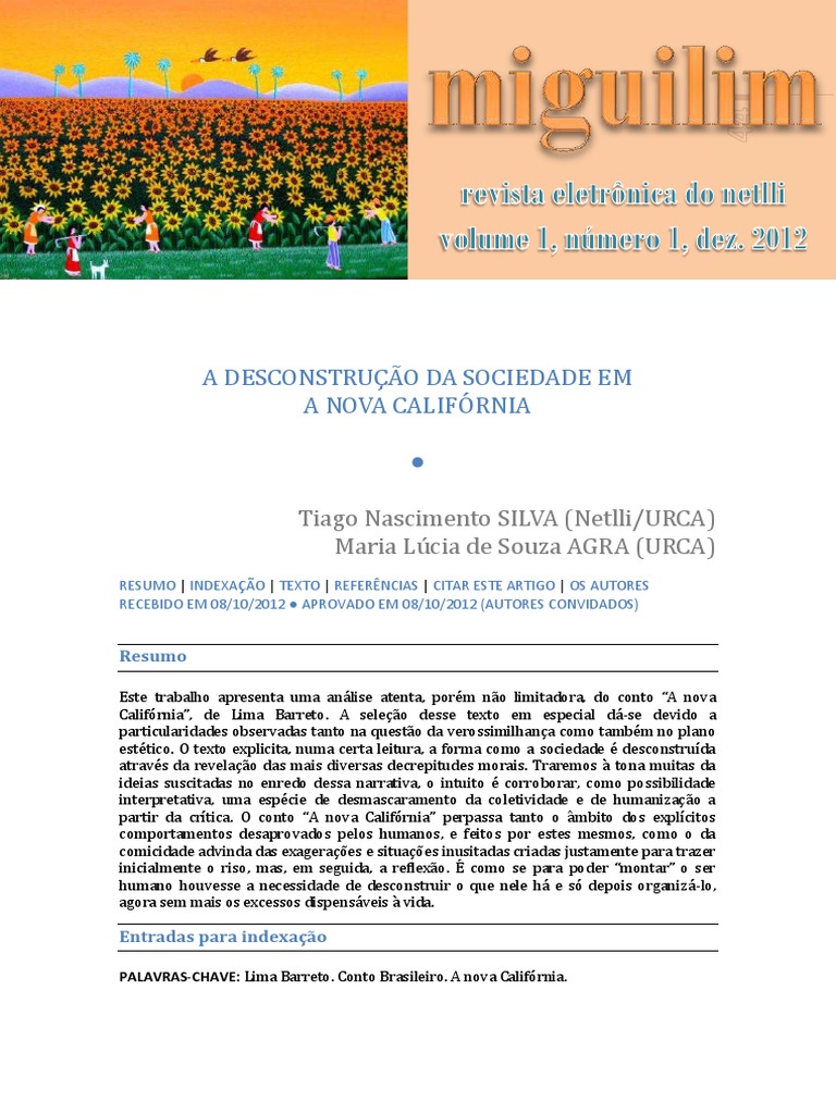 Califrnia, de Lima Barreto. A seleo desse texto em especial d-se devido a