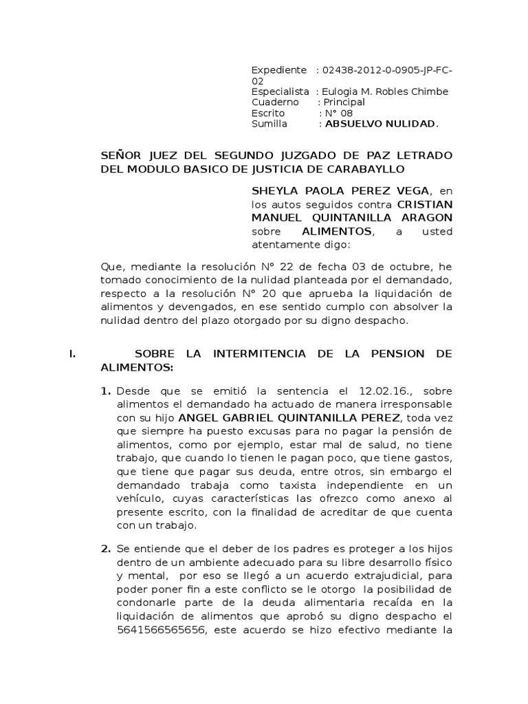 alimentos y devengados, en ese sentido cumplo con absolver la