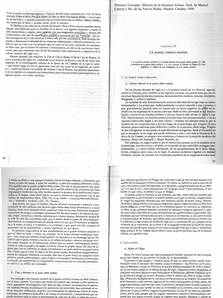 En 'las ltimas dcadas del siglo xm y la primera mitad del XIV floreci, especialmente en Toscana, pero tambin en las regiones cercanas, una poesa lrica que los crticos han llamado de distintas maneras, denominndola realista, jocosa, burlesca,