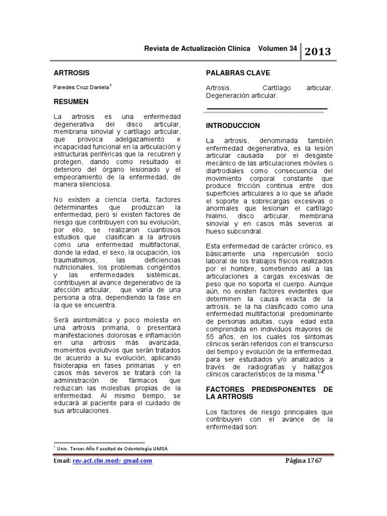 artrosis, se la ha clasificado como una