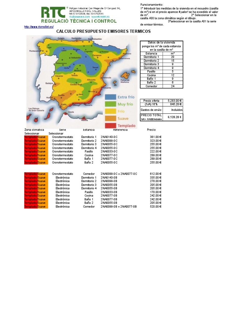 CALCULO PRESUPUESTO EMISORES TERMICOS