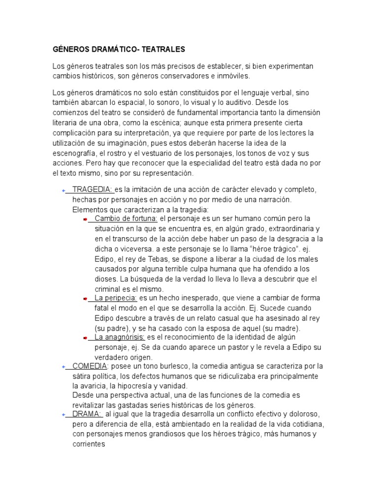 Los gneros teatrales son los ms precisos de establecer, si bien experimentan