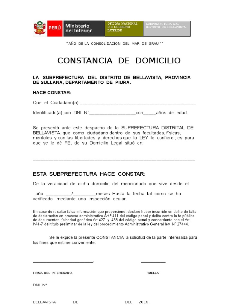 Srvase a presentar en esta SUB PREFECTURA POLITICA DE BELLAVISTA OFICINA