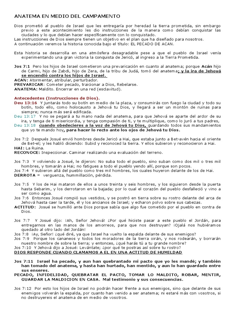 A continuacin veremos la historia conocida bajo el ttulo: EL PECADO DE ACAN.