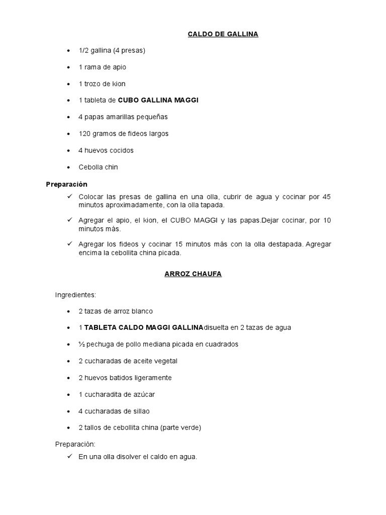 1 TABLETA CALDO MAGGI GALLINAdisuelta en 2 tazas de agua