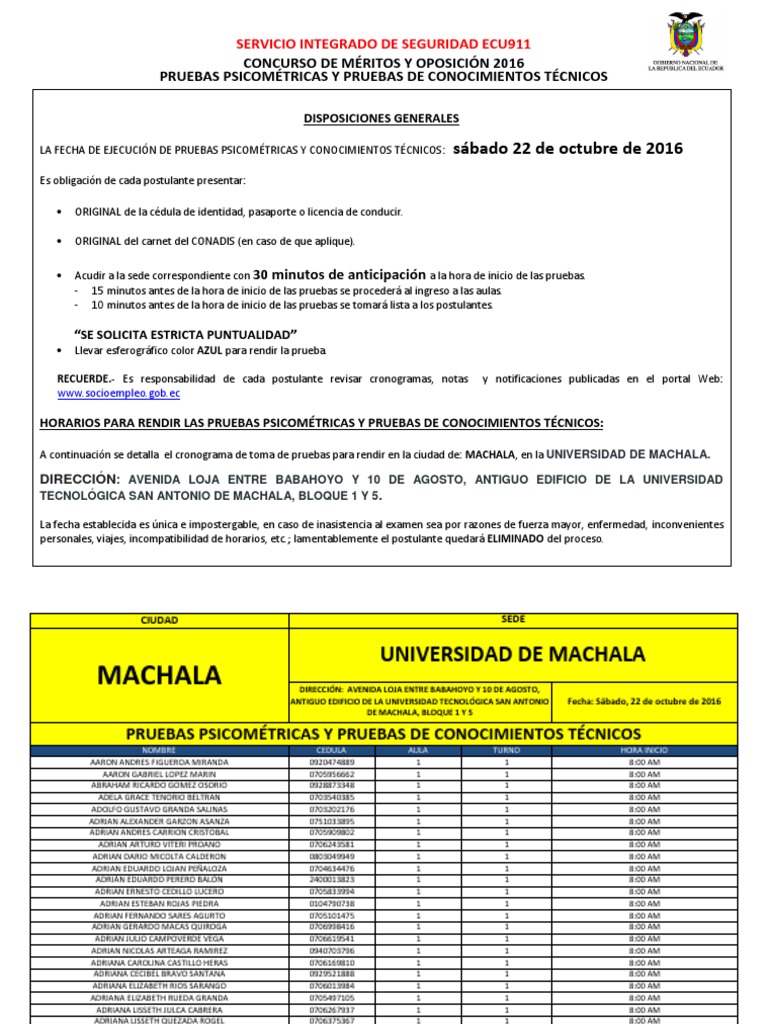 - 10 minutos antes de la hora de inicio de las pruebas se tomar lista a los postulantes.
