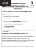 - 15 minutos antes de la hora de inicio de las pruebas se proceder al ingreso a las aulas.