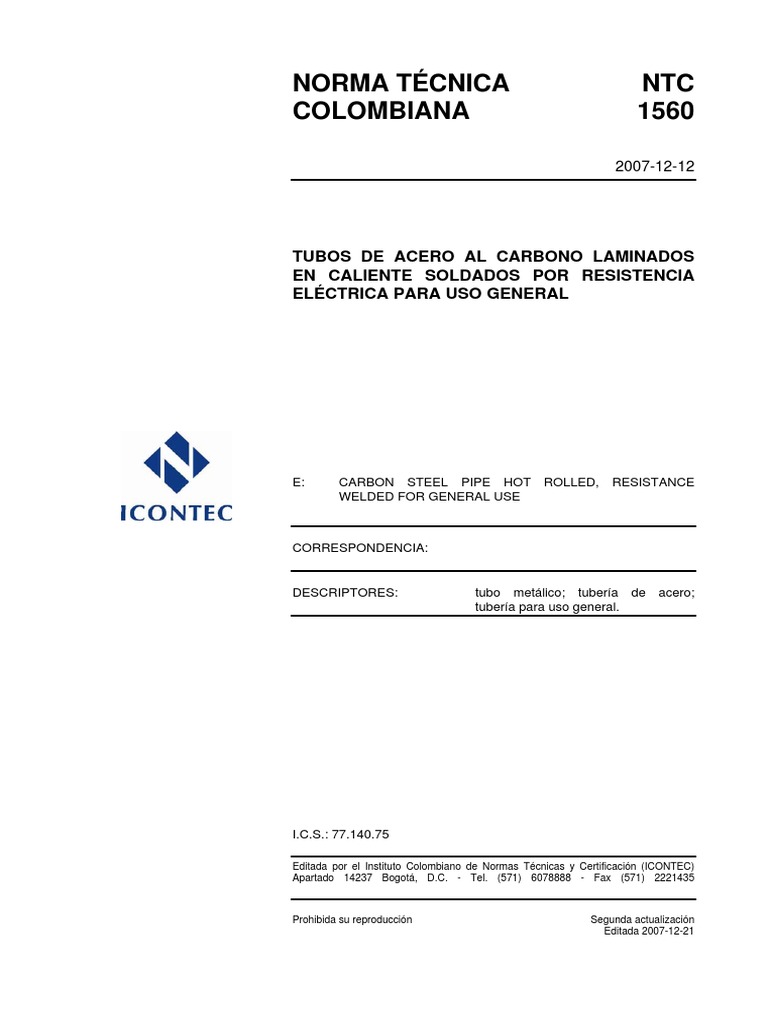 La NTC 1560 (Segunda actualizacin) fue ratificada por el Consejo Directivo del 2007-12-12.