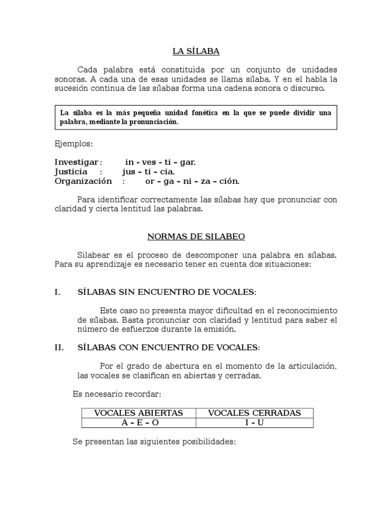 La slaba es la ms pequea unidad fontica en la que se puede dividir una
