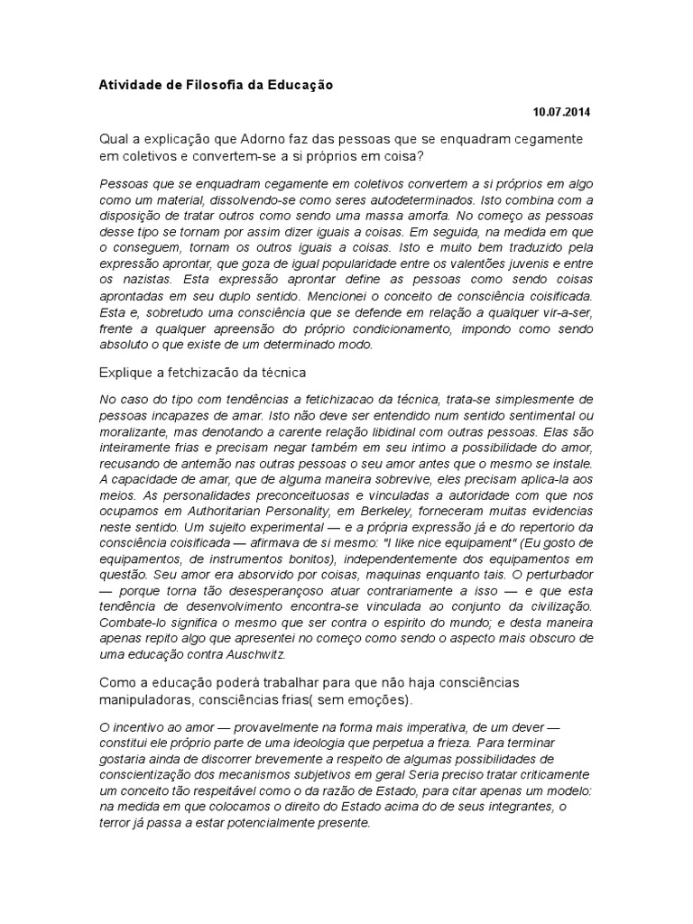 Atividade de Filosofia da Educao
