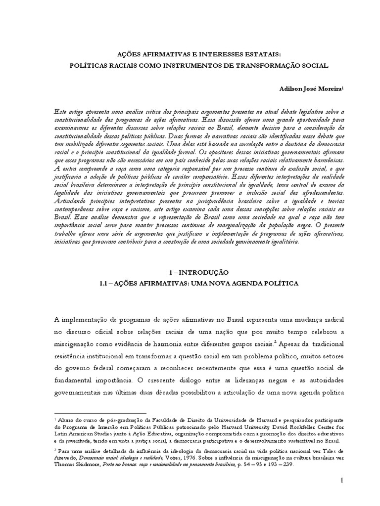 4 Alguns programas de aes afirmativas foram adotados por via legislativa. Esse o caso do Rio de Janeiro que