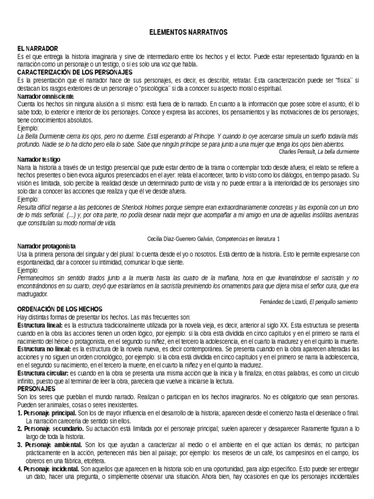 La presencia de elementos esenciales de la narracin.- Acostumbra a haber un narrador que cuenta lo que les