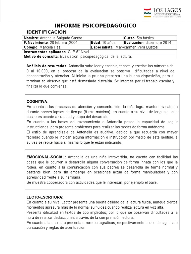 Informe psicopedaggico