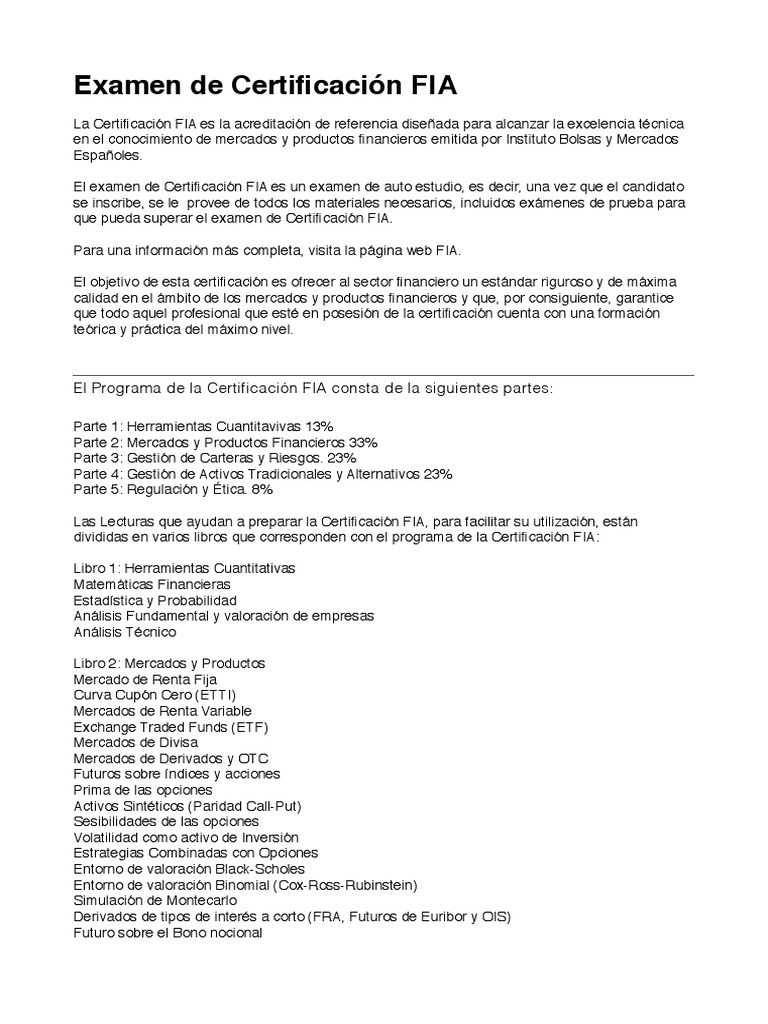 El examen de Certificacin FIA es un examen de auto estudio, es decir, una vez que el candidato