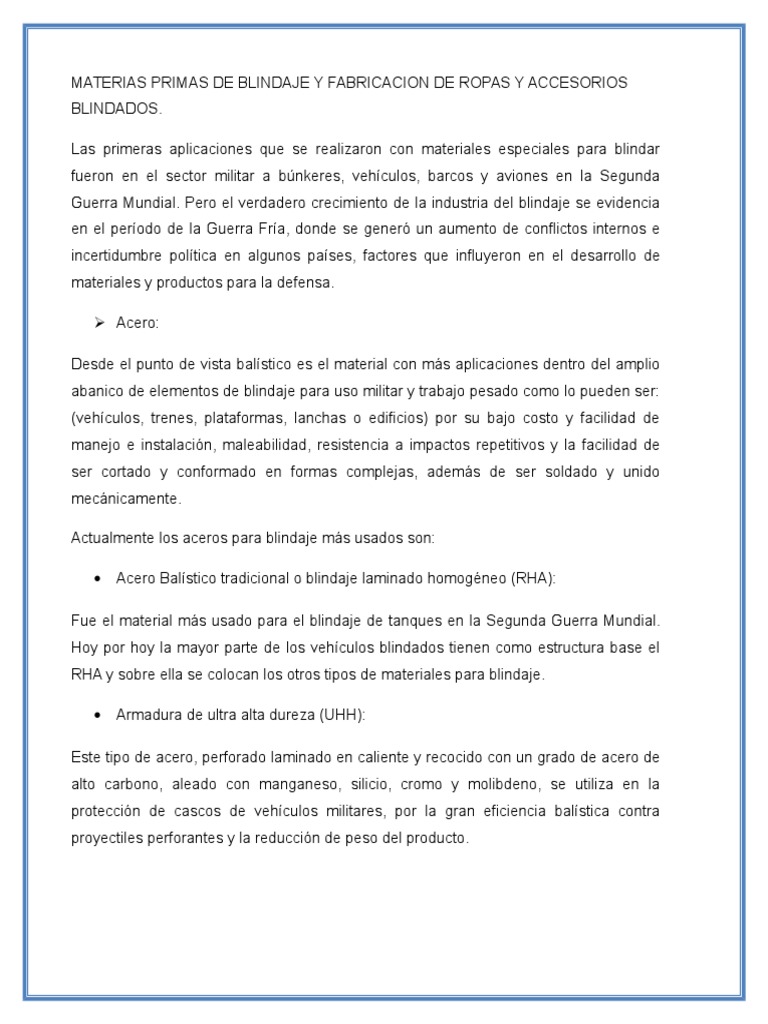 MATERIAS PRIMAS DE BLINDAJE Y FABRICACION DE ROPAS Y ACCESORIOS