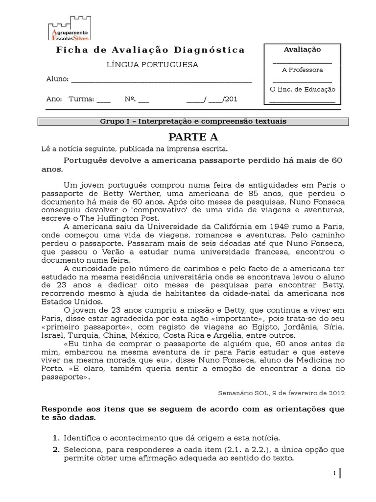 perdeu o passaporte. Passaram mais de seis dcadas at que Nuno Fonseca,