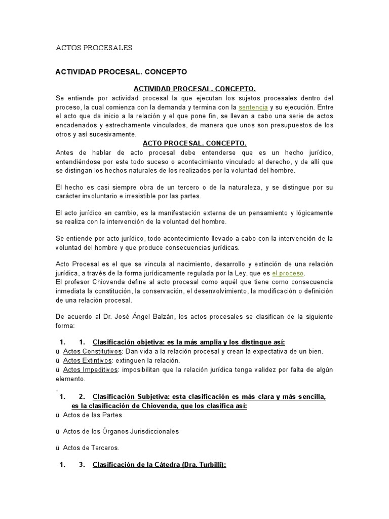 De acuerdo al Dr. Jos ngel Balzn, los actos procesales se clasifican de la siguiente