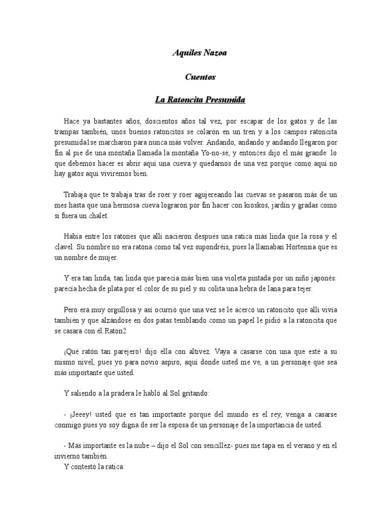 Pero era muy orgullosa y as ocurri que una vez se le acerc un ratoncito que all viva
