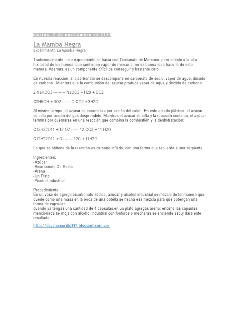 Tradicionalmente, este experimento se hacia con Tiocianato de Mercurio, pero debido a la alta