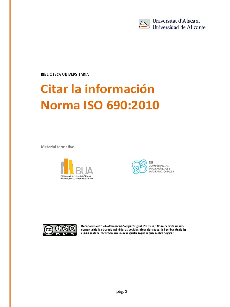 Si deseas conocer ms en profundidad la norma ISO 690:2010(E) te recomendamos consultarla: