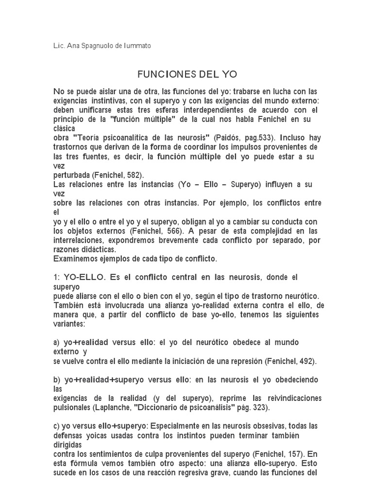 No se puede aislar una de otra, las funciones del yo: trabarse en lucha con las