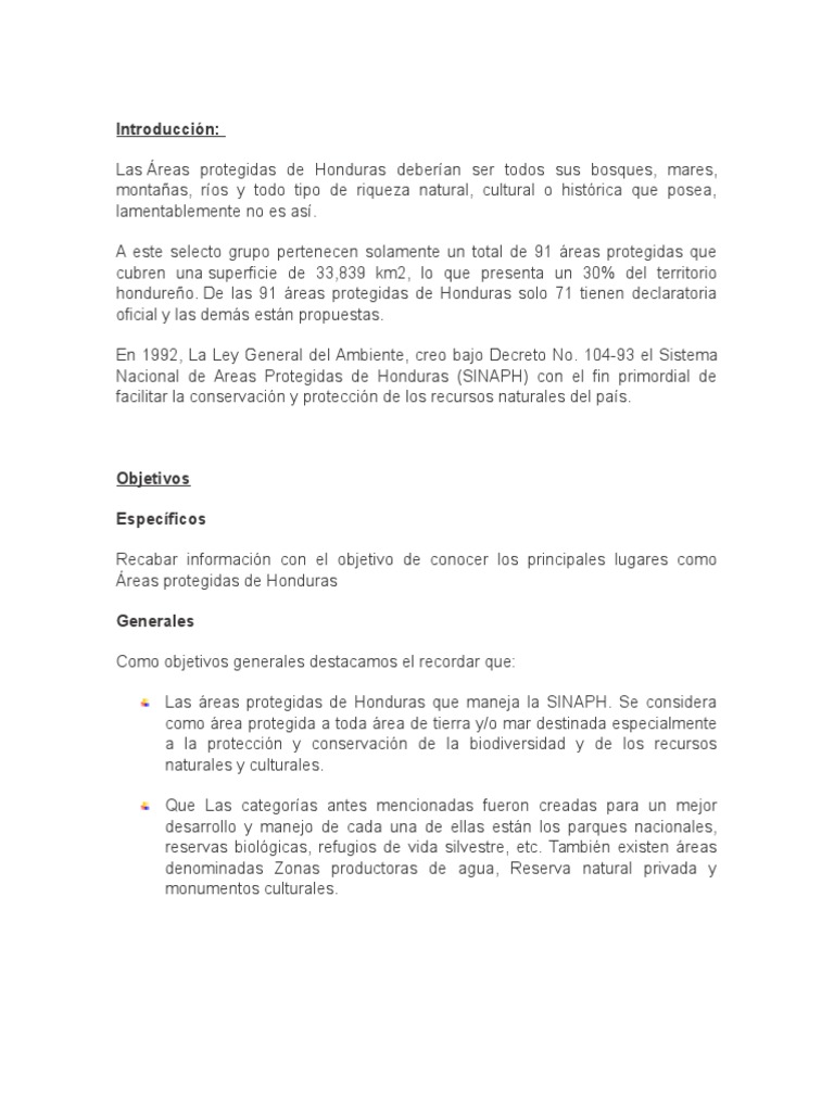 protegerla. En Honduras contamos con 91 reas protegidas que ocupan una