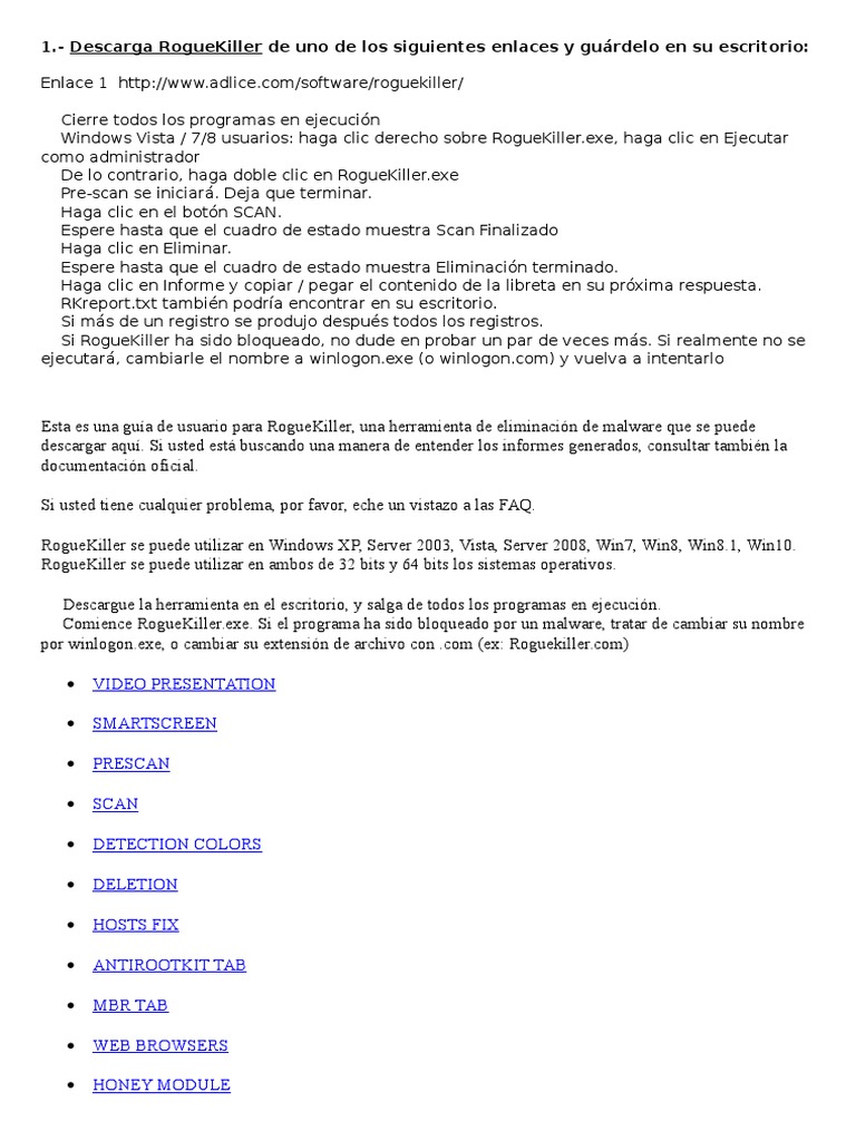 Esta es una gua de usuario para RogueKiller, una herramienta de eliminacin de malware que se puede