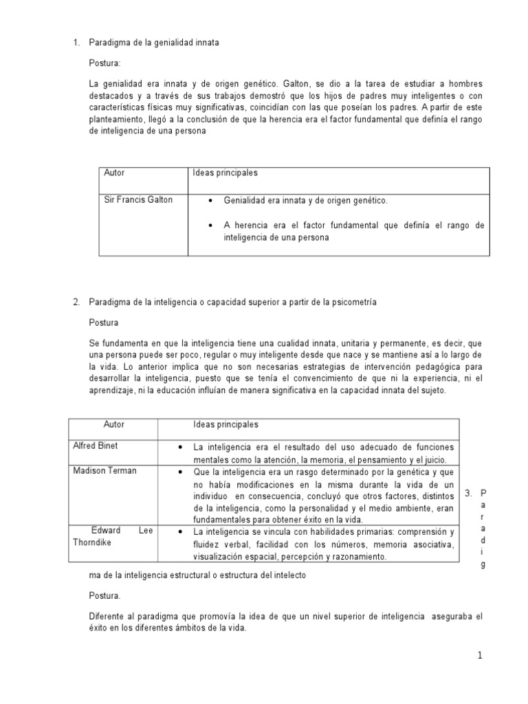 2. Paradigma de la inteligencia o capacidad superior a partir de la psicometra
