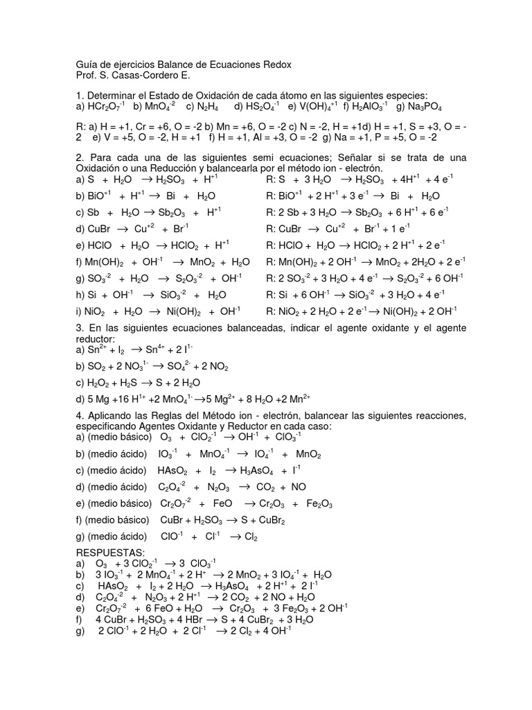 Gua de ejercicios Balance de Ecuaciones Redox