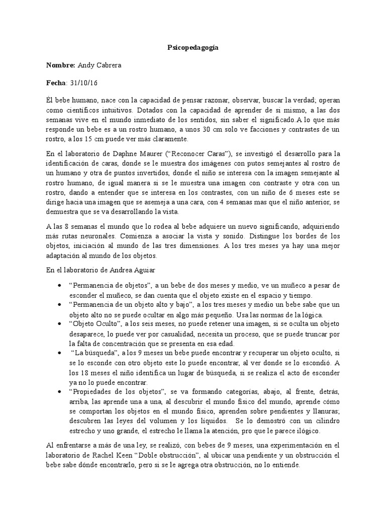 extremidades y sentidos, si no es asi no lo utiliza. A los 18 meses entiende de mejor manera el