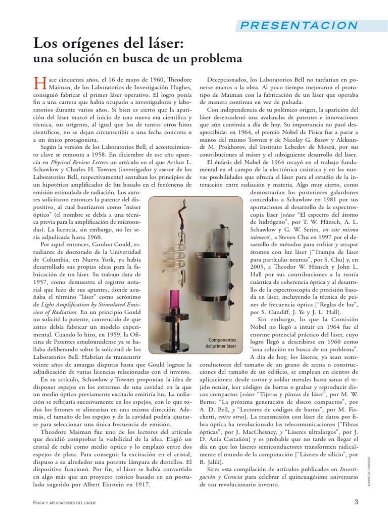 n a una carrera que haba ocupado a investigadores y laboratorios durante varios aos. Si bien es cierto que la aparicin del lser marc el inicio de una nueva era cientca y