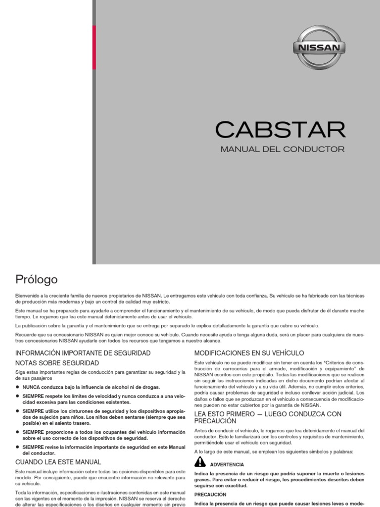 Antes de conducir el vehculo, le rogamos que lea detenidamente el manual del