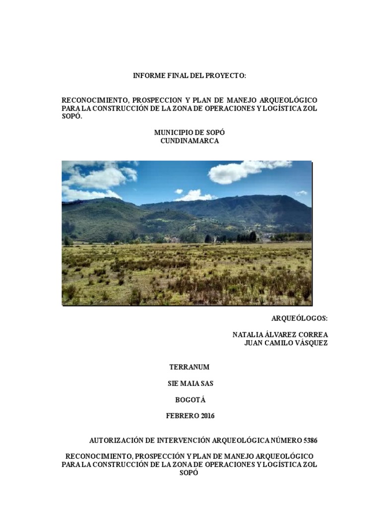 manejo del patrimonio arqueolgico previo al desarrollo de las obras civiles. Adems de
