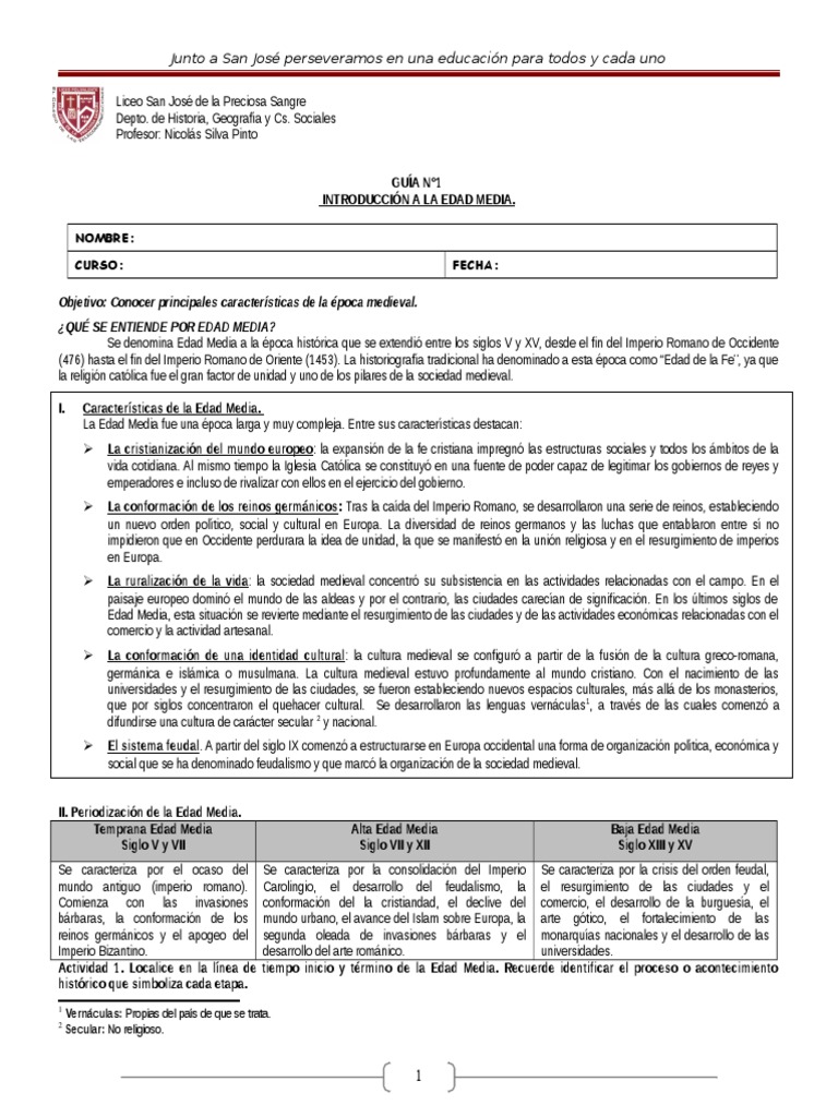 Objetivo: Conocer principales caractersticas de la poca medieval.