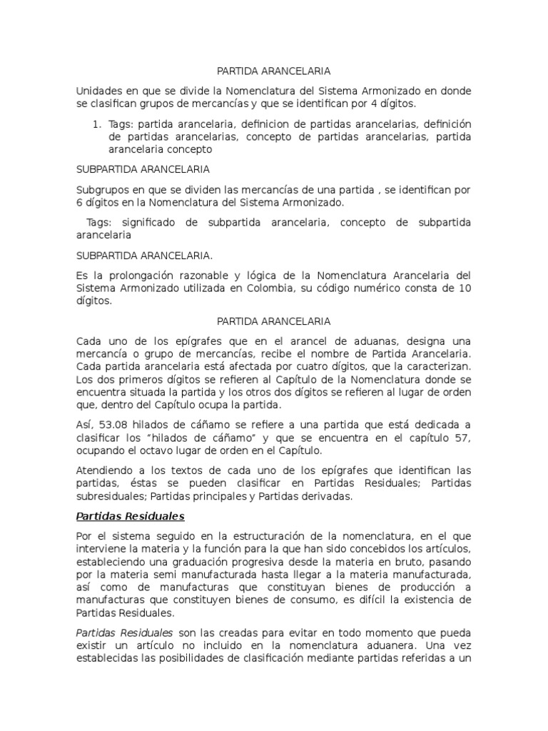 1. Tags: partida arancelaria, definicion de partidas arancelarias, definicin