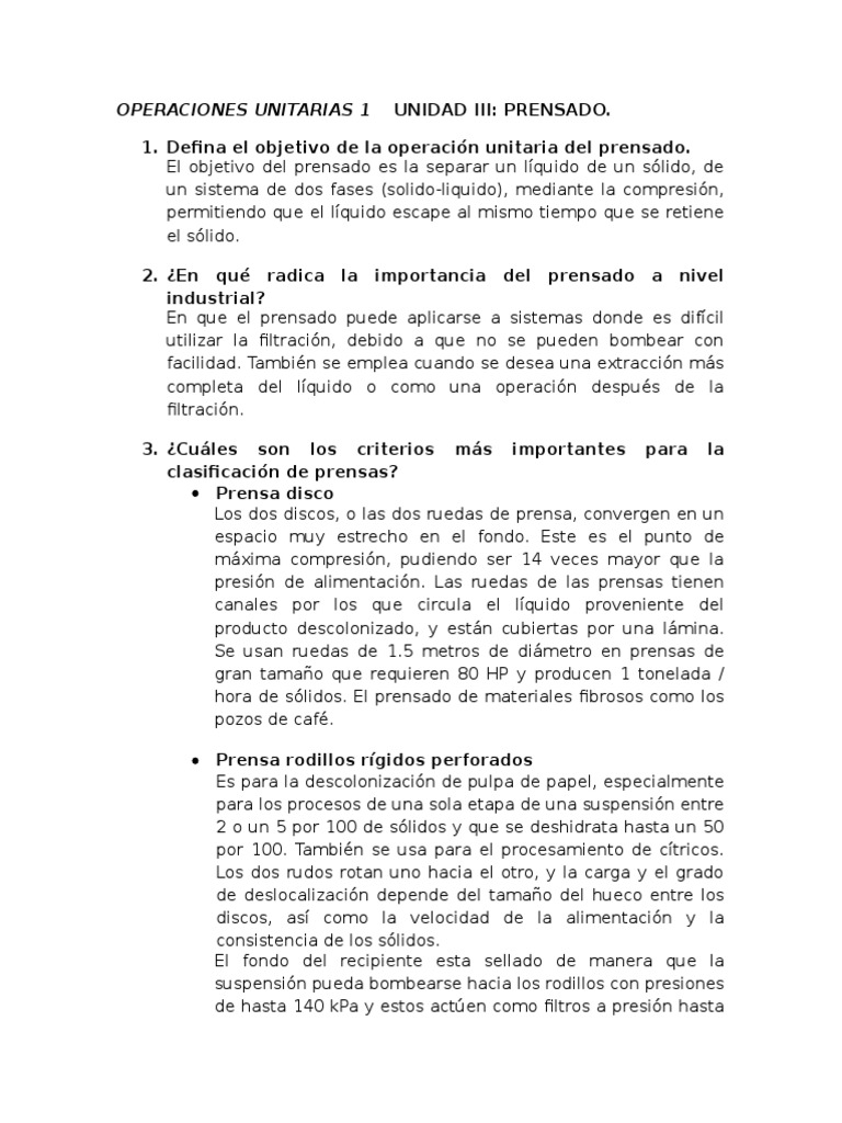 1. Defina el objetivo de la operacin unitaria del prensado.