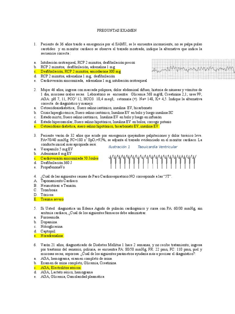 Cardioversin sincronizada, adrenalina 1 mg, intubacin orotraqueal