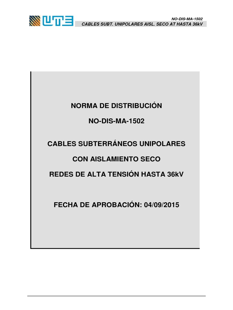 La presente Norma tiene por objeto definir las caractersticas de los cables subterrneos