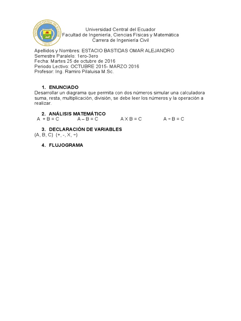Apellidos y Nombres: ESTACIO BASTIDAS OMAR ALEJANDRO