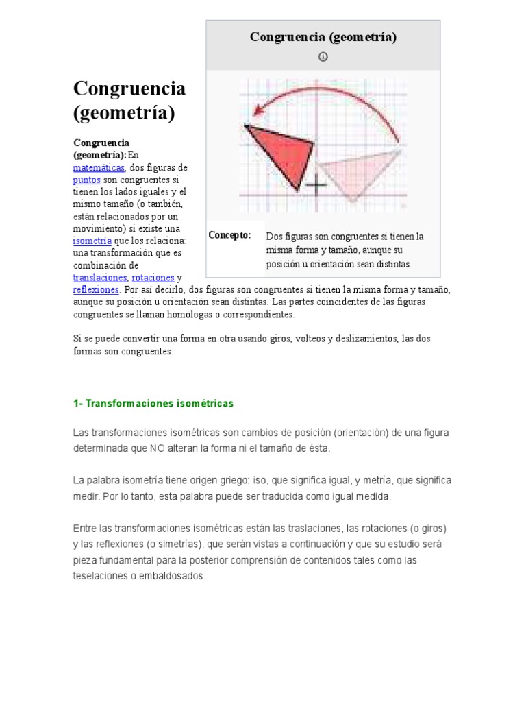 reflexiones. Por as decirlo, dos figuras son congruentes si tienen la misma forma y tamao,