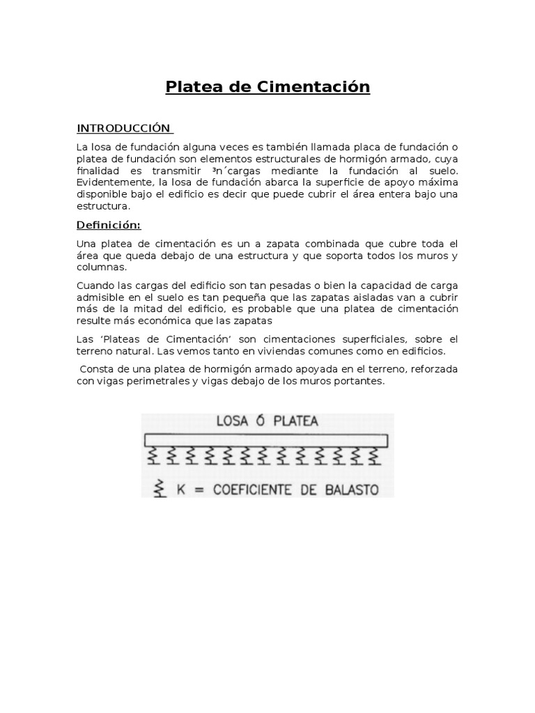 platea de fundacin son elementos estructurales de hormign armado, cuya