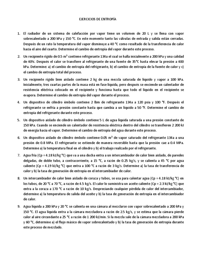 hacia el aire del cuarto. Determine el cambio de entropa del vapor durante este proceso.
