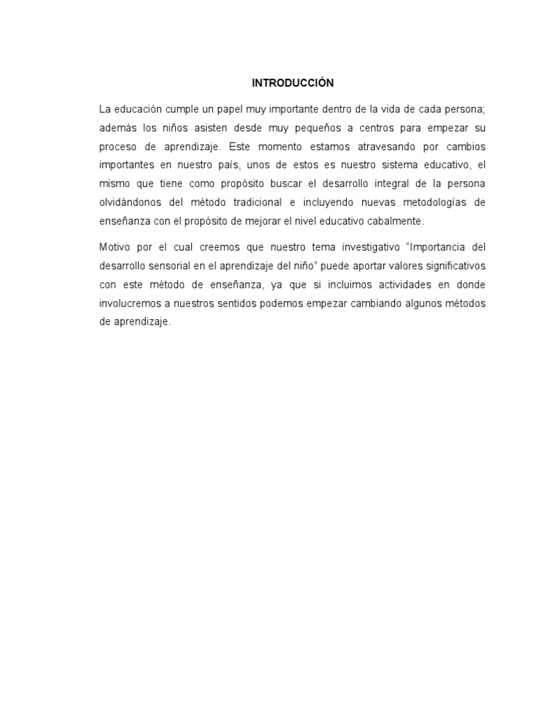 desarrollo sensorial en el aprendizaje del nio puede aportar valores significativos