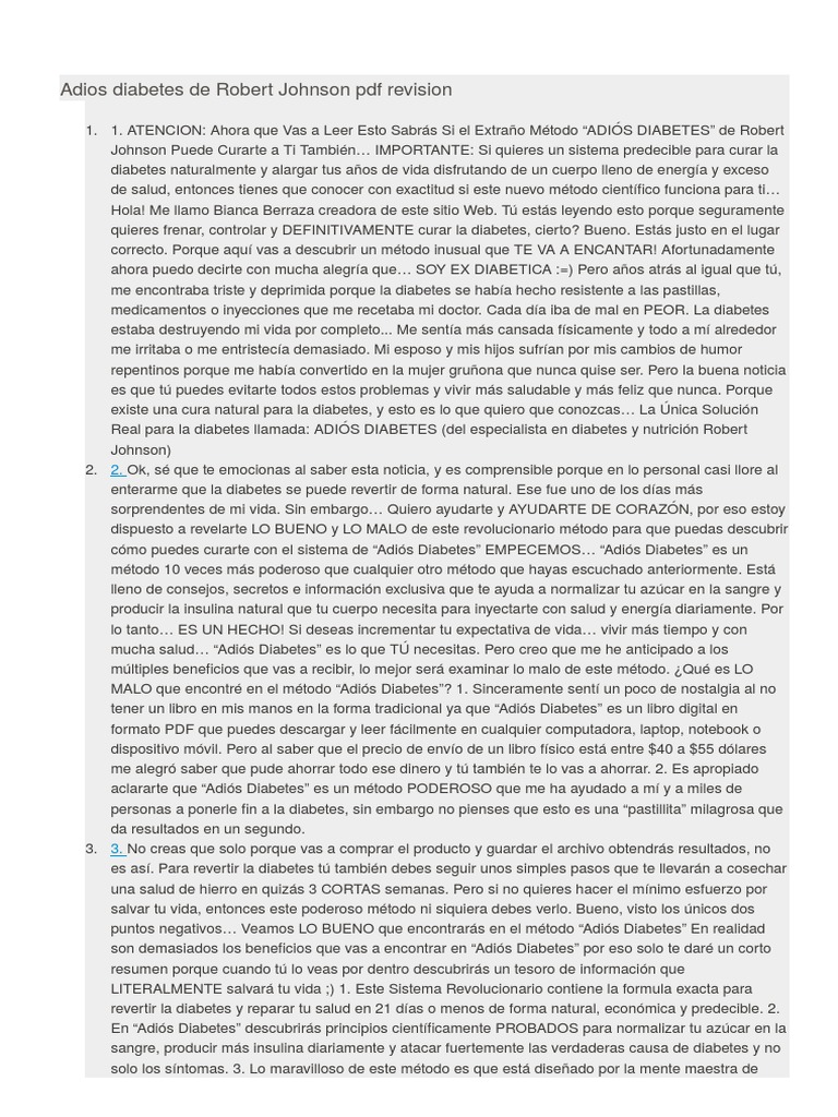 puntos negativos Veamos LO BUENO que encontrars en el mtodo Adis Diabetes En realidad