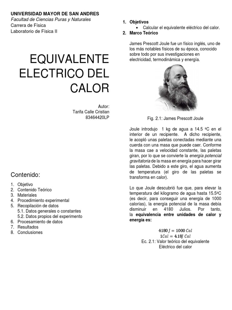 2. Contenido Teórico Lo que Joule descubrió fue que, para elevar la