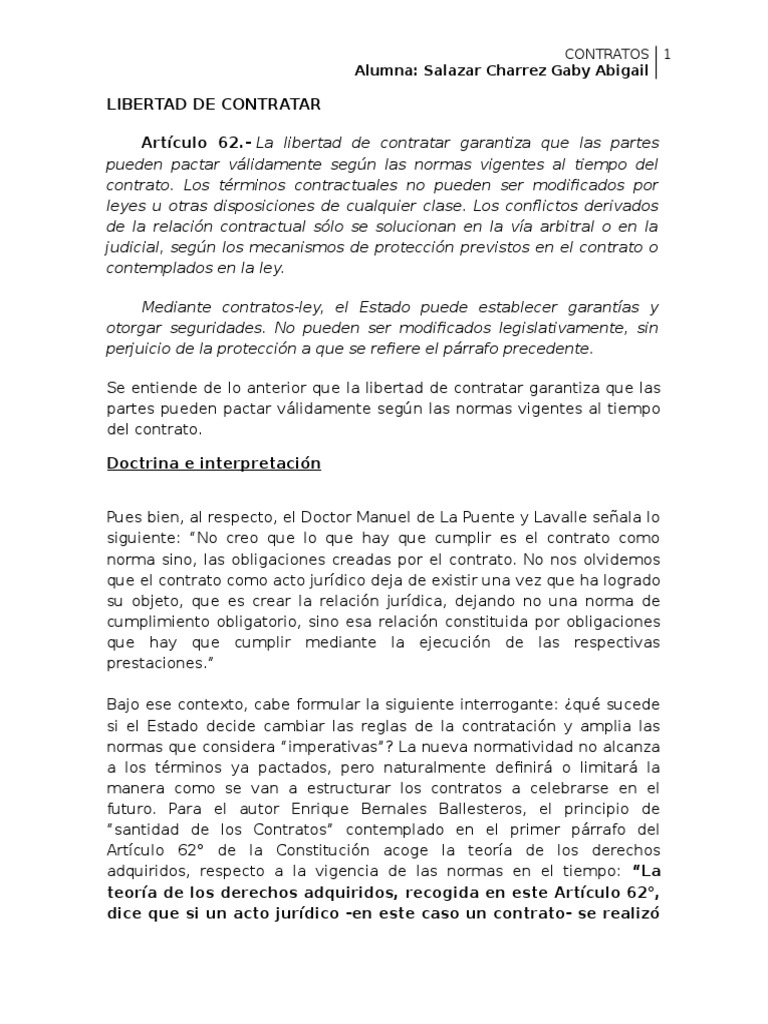 Artculo 62.- La libertad de contratar garantiza que las partes