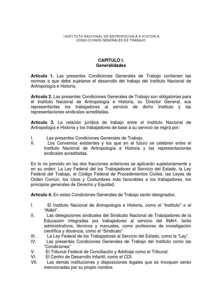 Artculo 1. Las presentes Condiciones Generales de Trabajo contienen las
