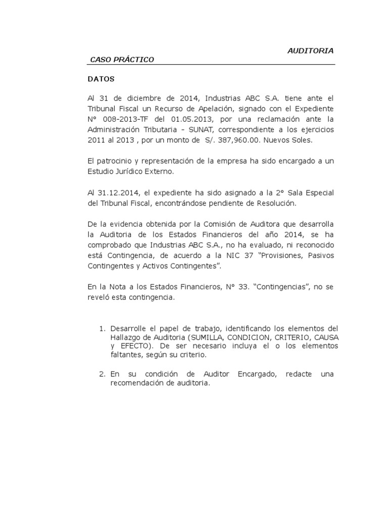 Al 31 de diciembre de 2014, Industrias ABC S.A. tiene ante el Tribunal Fiscal