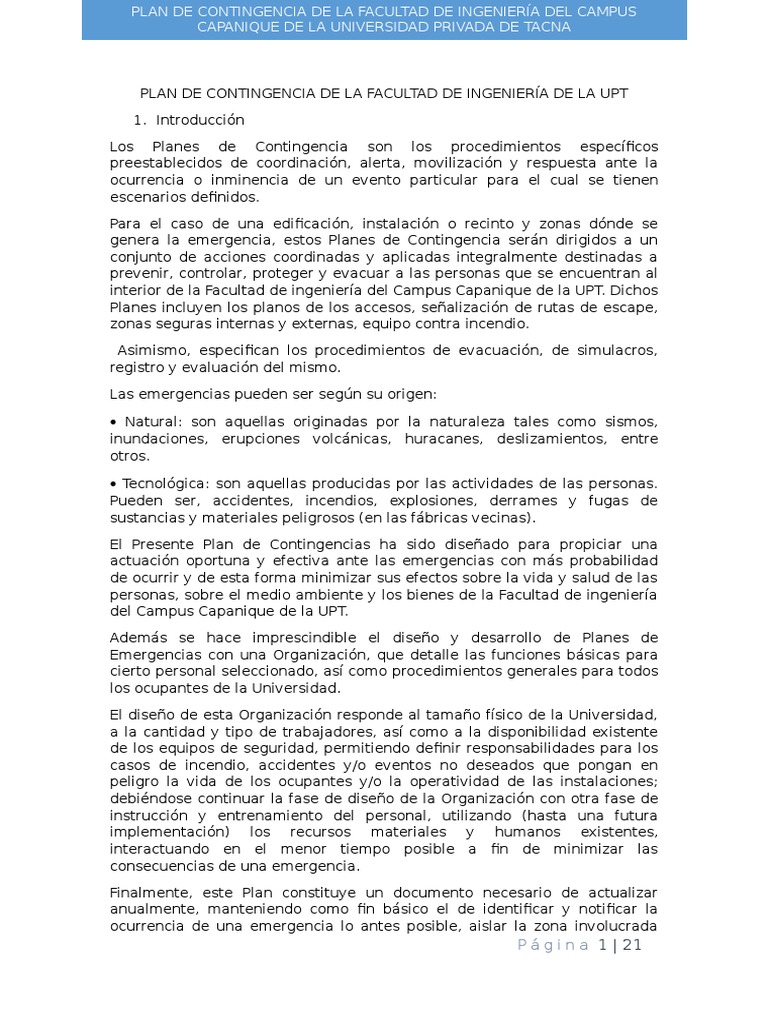 PLAN DE CONTINGENCIA DE LA FACULTAD DE INGENIERA DE LA UPT