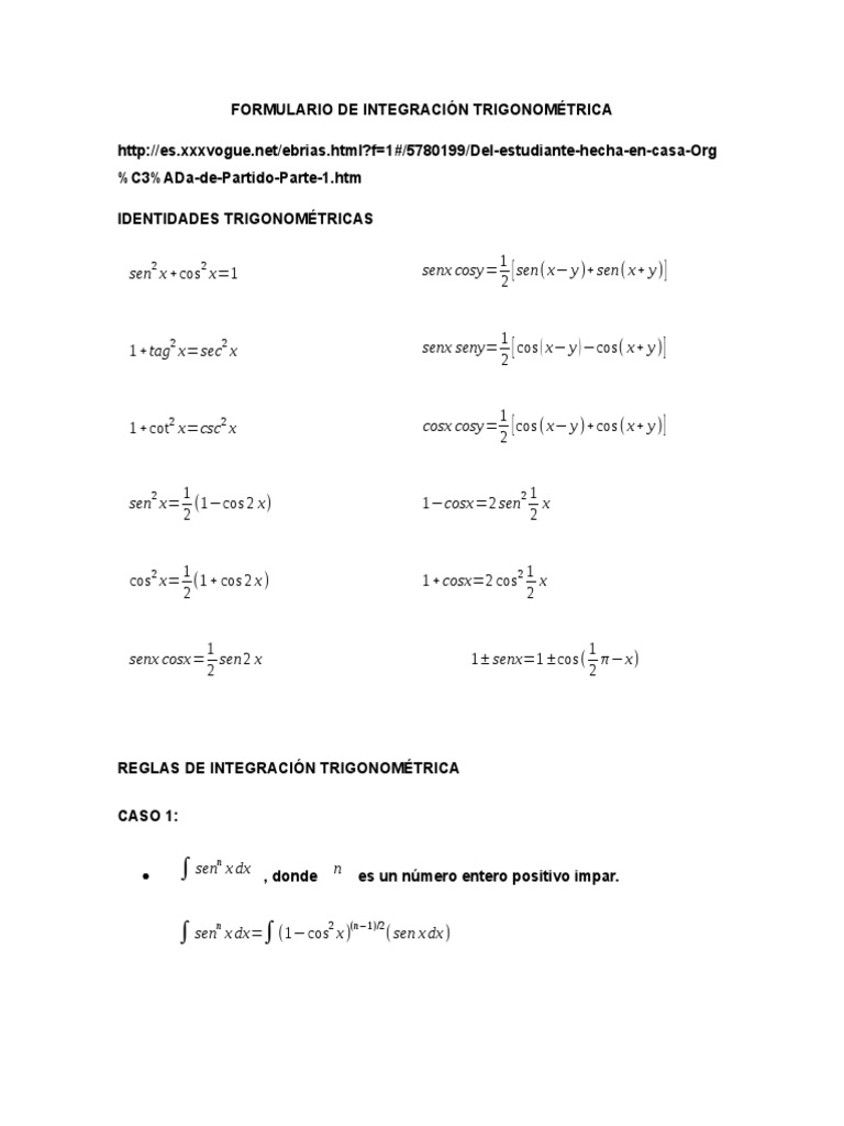 FORMULARIO DE INTEGRACIN TRIGONOMTRICA